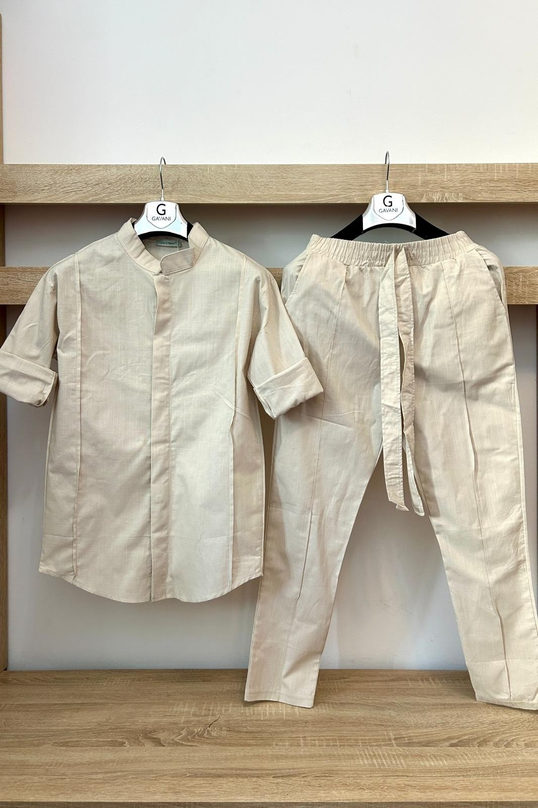 Compleu barbati, camasa cu inchidere pe nasturi ascunsi ,pantaloni lungi cu siret