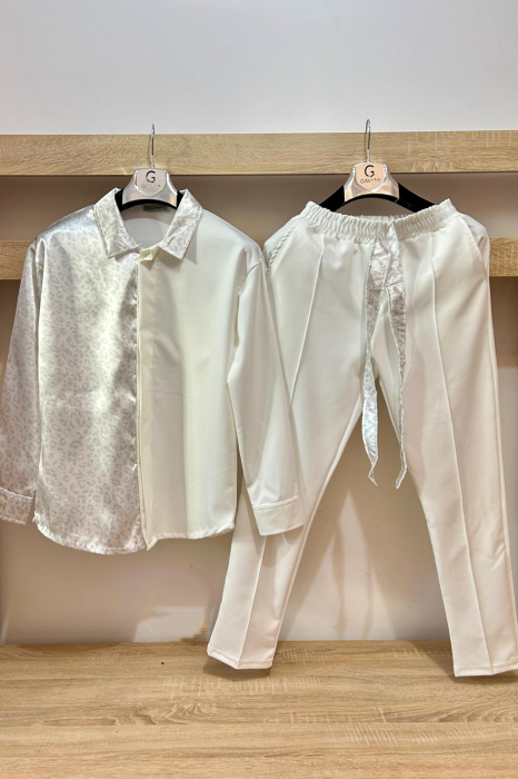 Compleu barbati ,camasa si pantaloni lungi cu siret, croiala lejera.