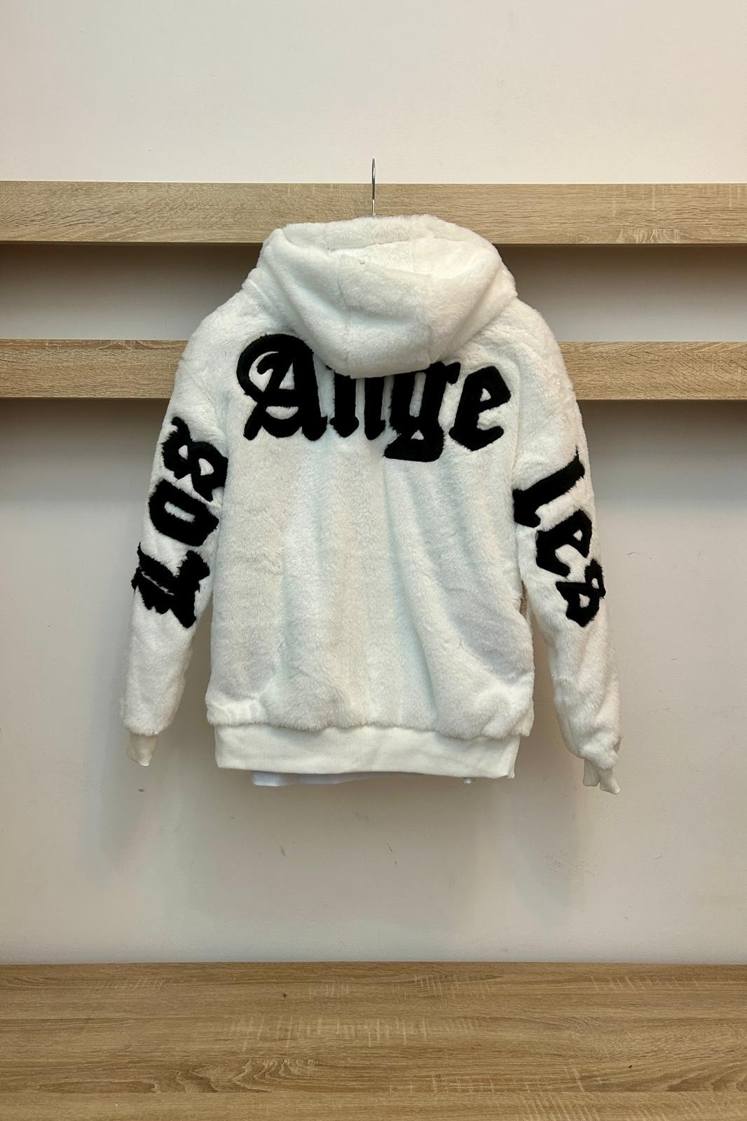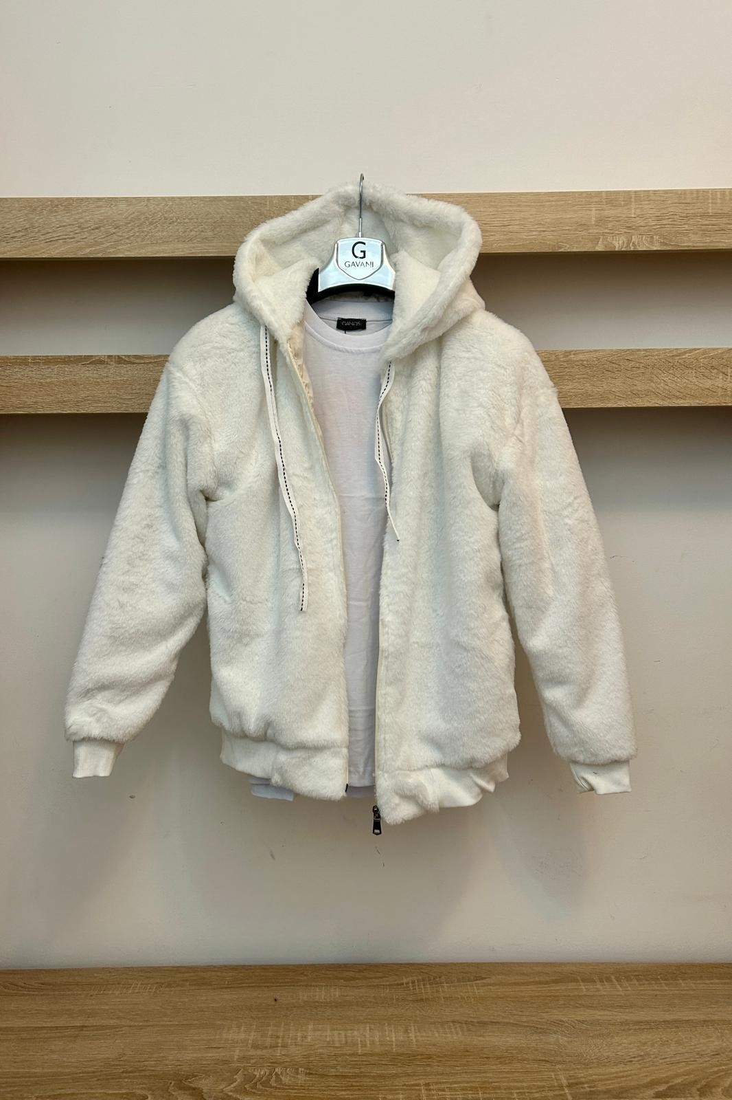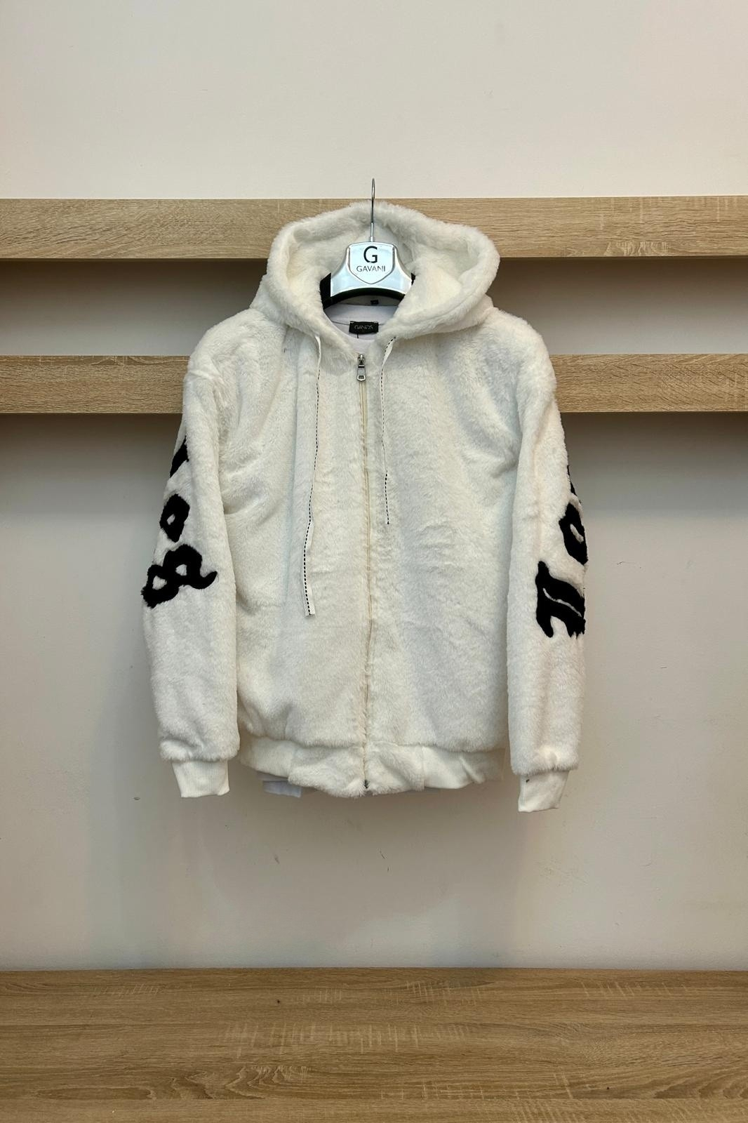 Geaca cu gluga, banda elastica in talie si la maneci.