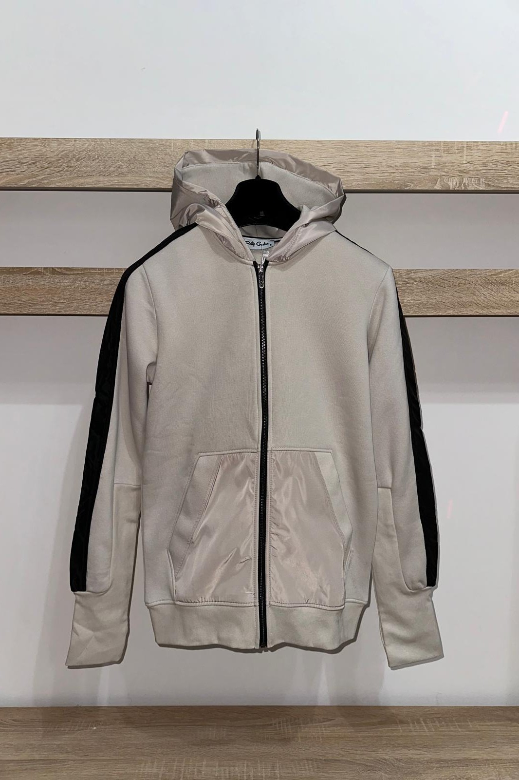 Bluza de trening cu închidere pe fermoar, gluga, banda elastica in talie si la maneci.