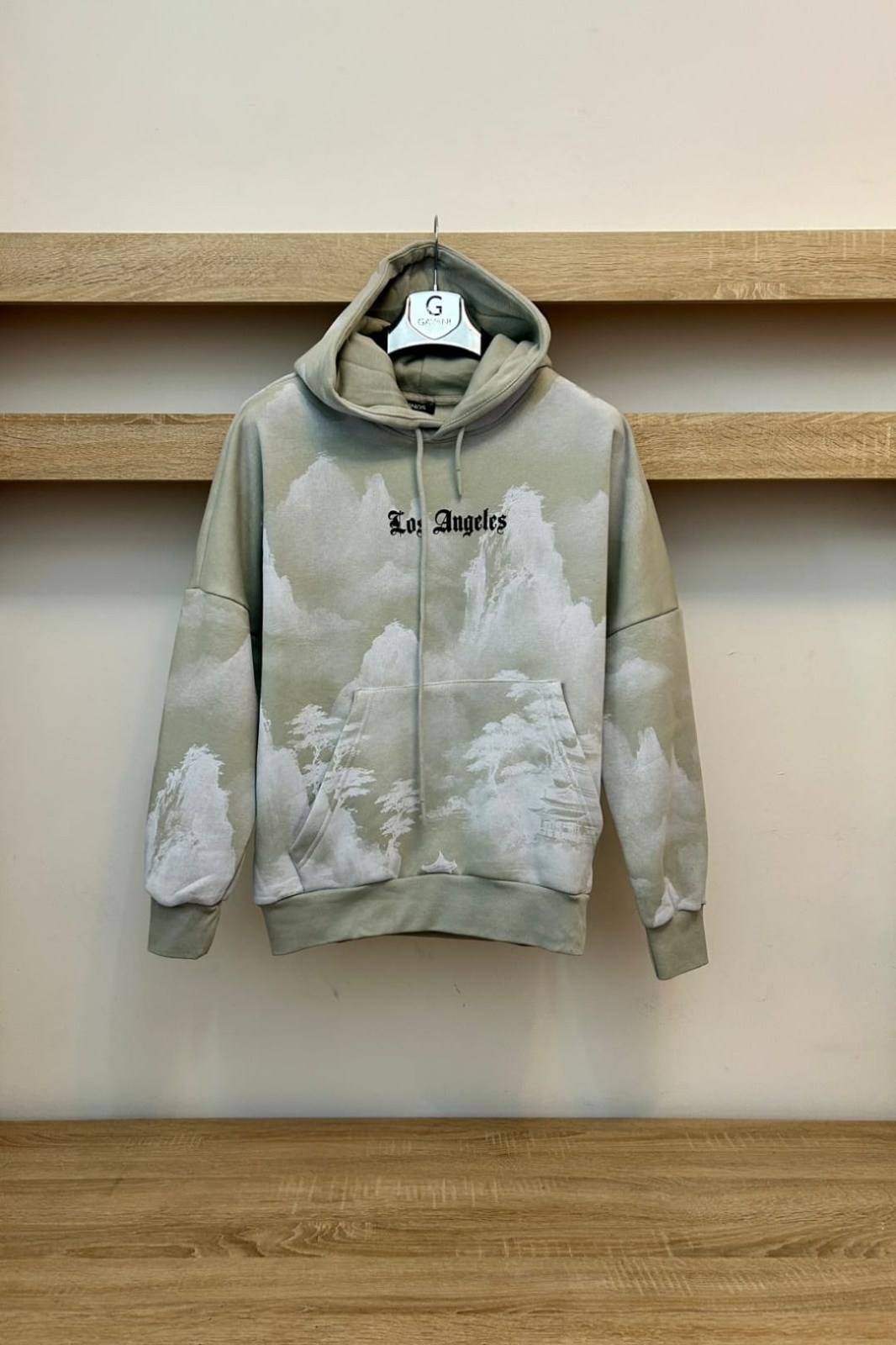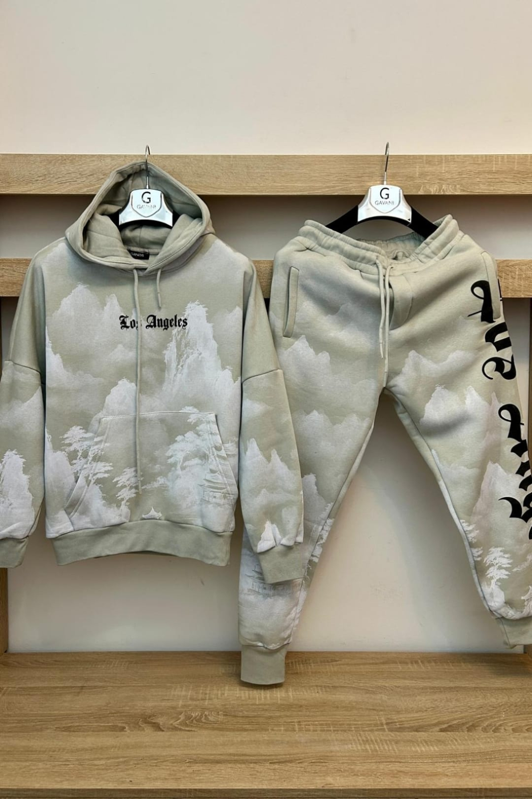 Trening barbati. Bluza stil hanorac cu gluga, banda elastica in talie si la maneci. Pantaloni conici, banda elastica in talie si la glezna.