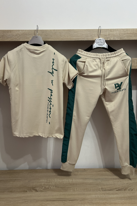 Set sport modern format din tricou si pantaloni, realizat din material confortabil si respirabil. Design minimalist, ideal pentru tinute sport.