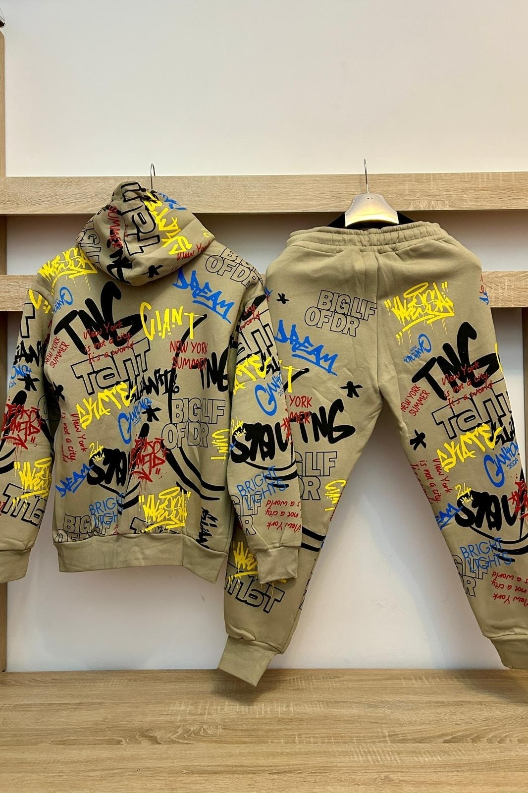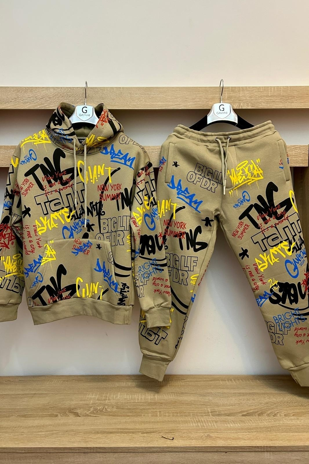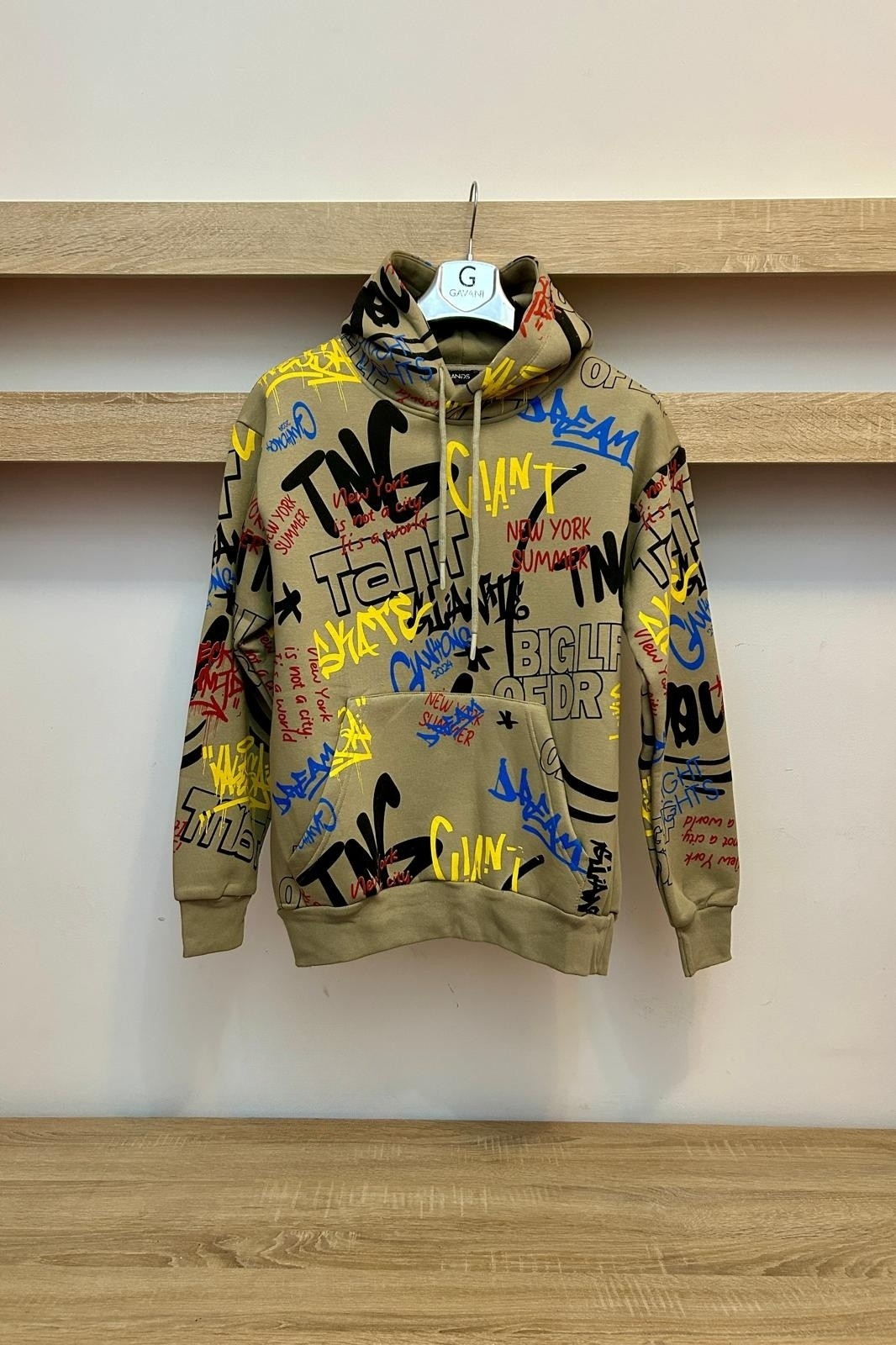 Trening barbati. Bluza stil hanorac cu gluga, banda elastica in talie si la maneci. Pantaloni conici, banda elastica in talie si la glezna.