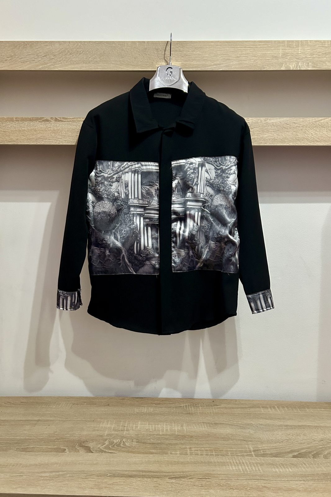 Compleu barbati modern format din camasa si pantaloni cu imprimeu artistic. Ideal pentru tinute smart-casual sau iesiri de seara.